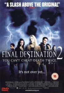 |  | When Kimberly has a violent premonition of a highway pileup she blocks the freeway, keeping a few others meant to die, safe...Or are they? The survivors mysteriously start dying and it's up to Kimberly to stop it before she's next. |